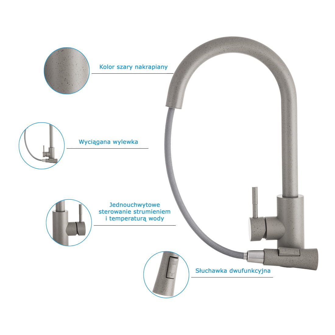 Bateria kuchenna Loseto wyciągana wylewka szara gładka