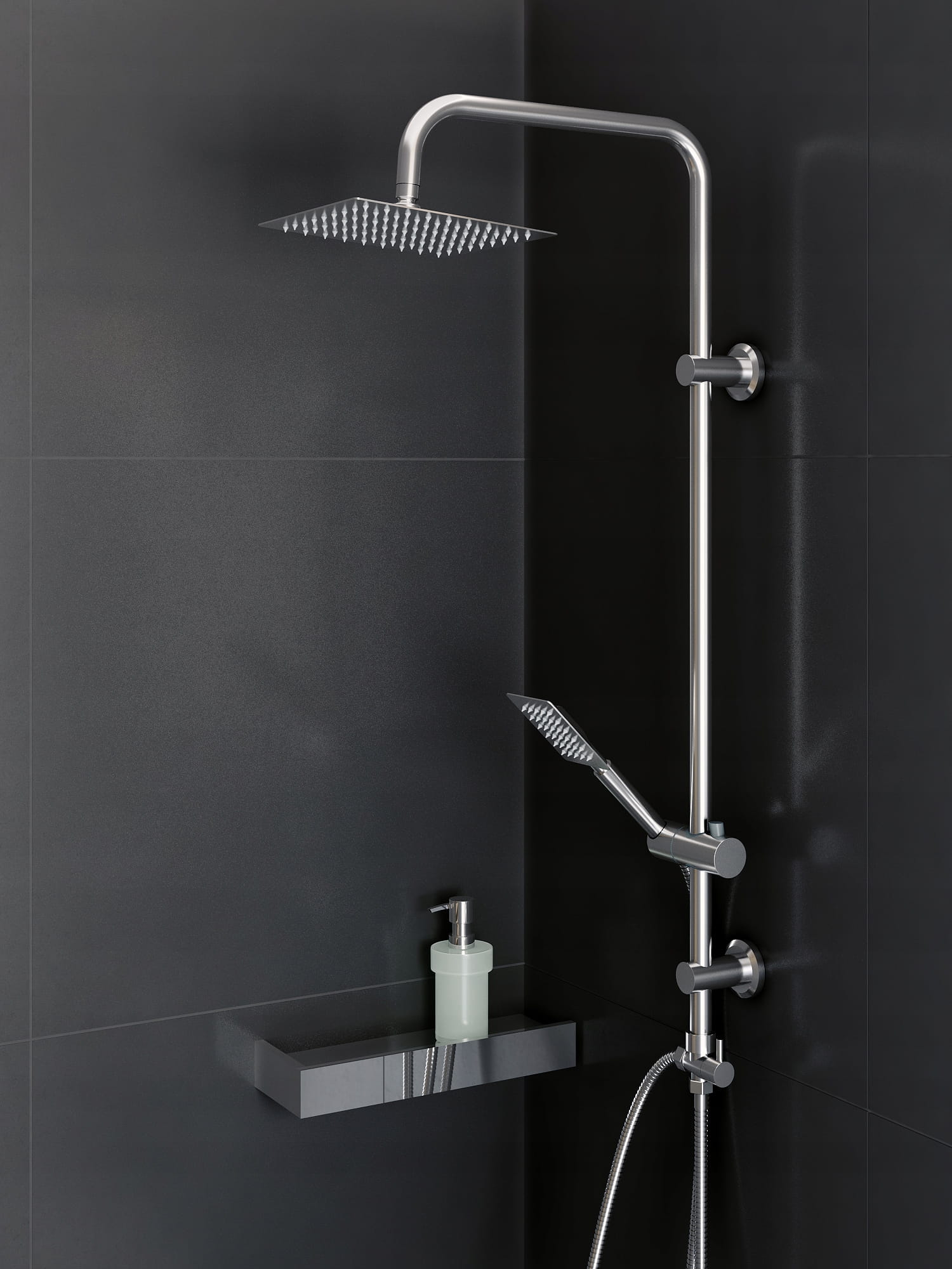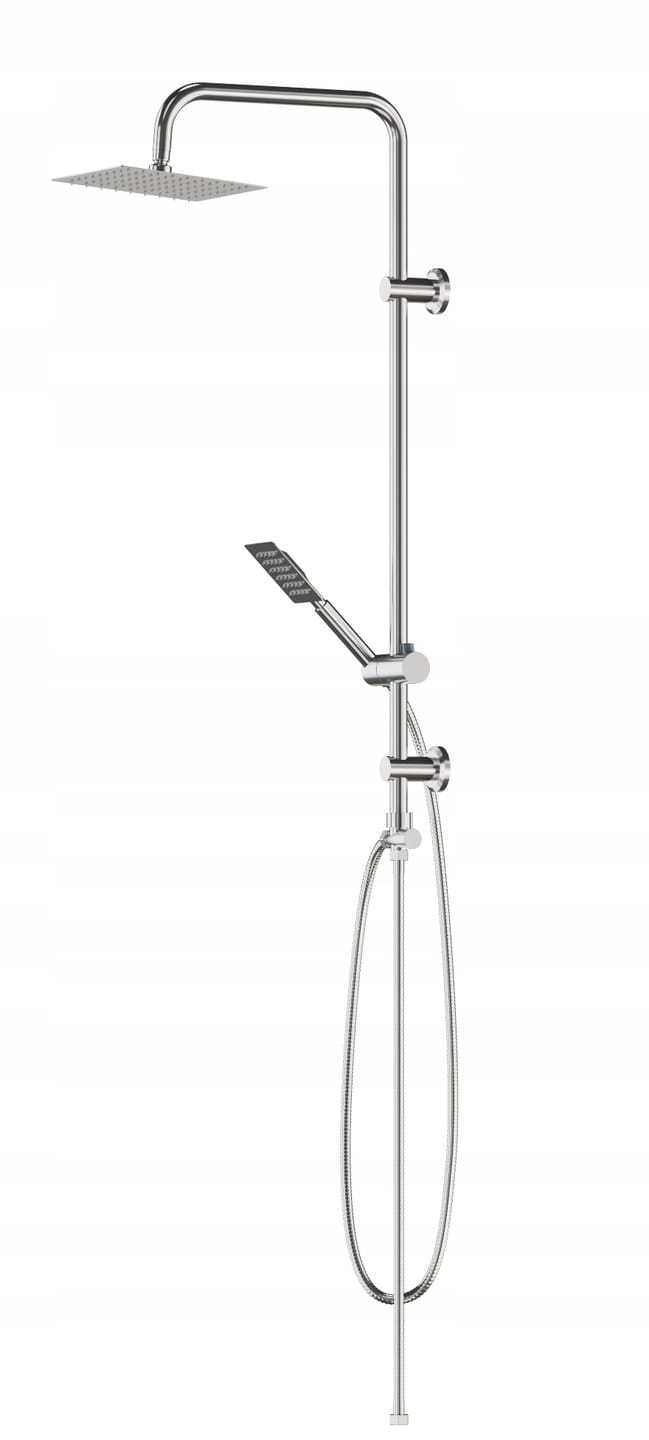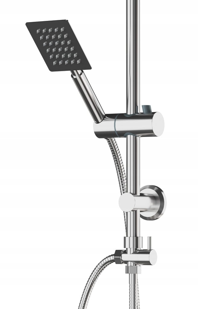 TOBAR zestaw natryskowy, prysznicowy z deszczownicą slim o wysokiej jakości, wykonany z mosiądzu, stali nierdzewnej oraz tworzywa PCV, w kolorze chrom. Powłoka odporna na przebarwienia i wysoką temperaturę. Deszczownica SLIM 20 cm wykonana ze stali nierdzewnej. Przełącznik natrysku mechaniczny, mosiężny. Słuchawka 1-funkcyjna, wykonana ze stali nierdzewnej.