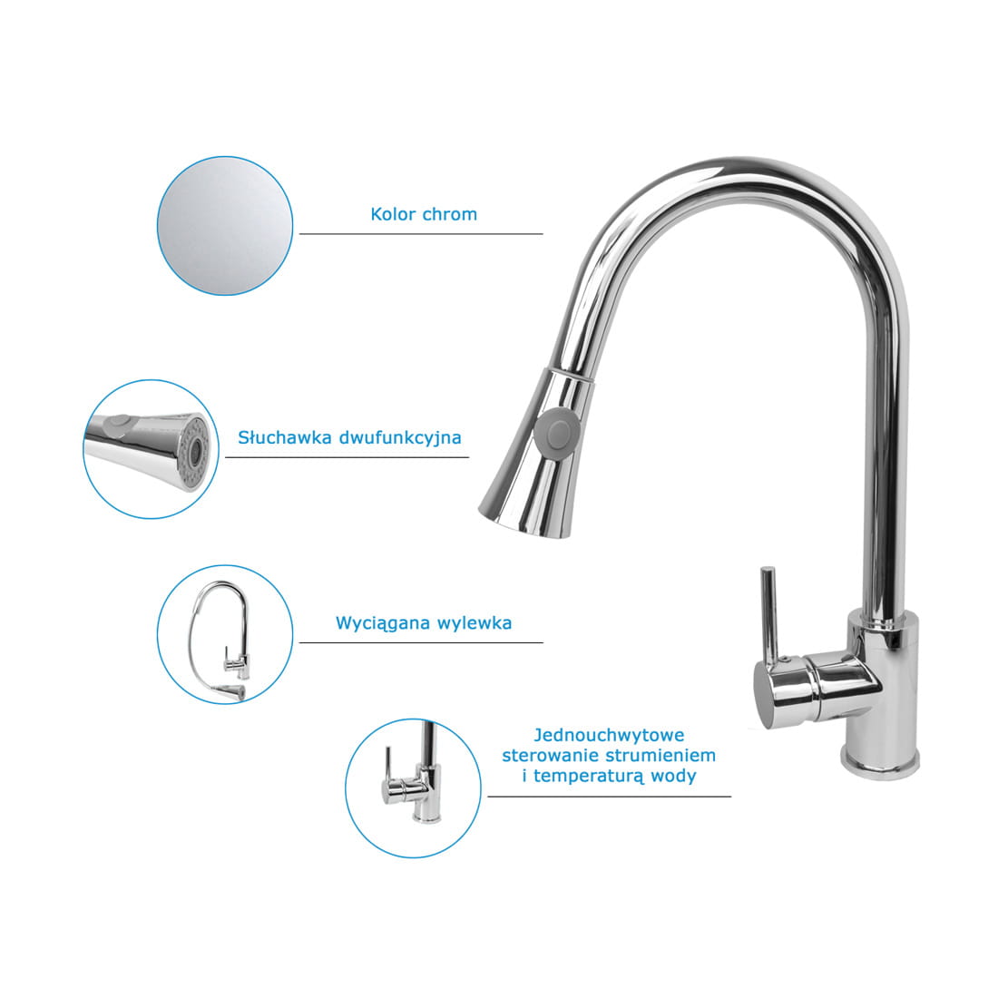 Spiral chrom bateria kuchenna z wyciąganą wylewką