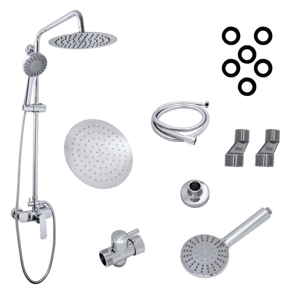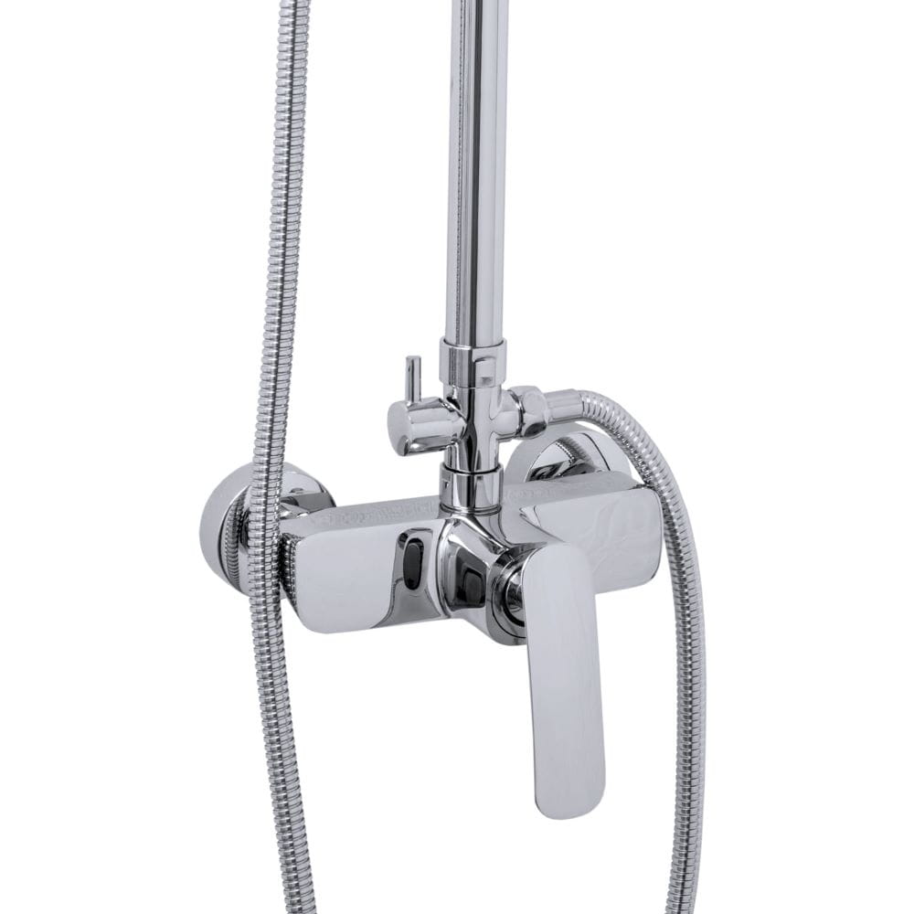 Tony zestaw natryskowy z deszczownicą slim o wysokiej jakości, wykonany z mosiądzu, stali nierdzewnej oraz tworzywa PCV, w kolorze chrom/połysk. Powłoka odporna na przebarwienia i wysoką temperaturę. Deszczownica SLIM 20 cm wykonana ze stali nierdzewnej z dyszami ANTICALC. Słuchawka 3-funkcyjna, z dyszami ANTICALC. Posiada atest higieniczny wydany przez PZH.