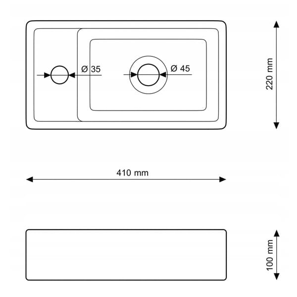 Umywalka ceramiczna nablatowa prostokątna mała ASPRA