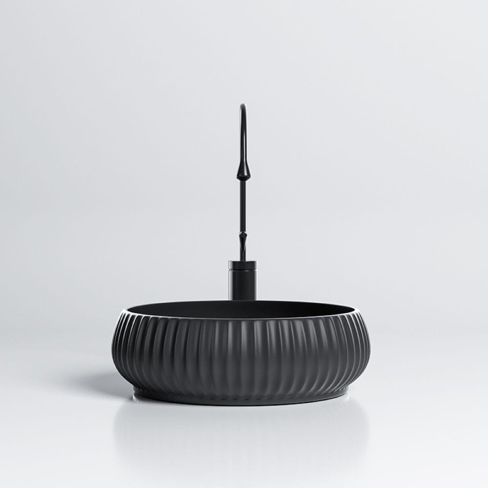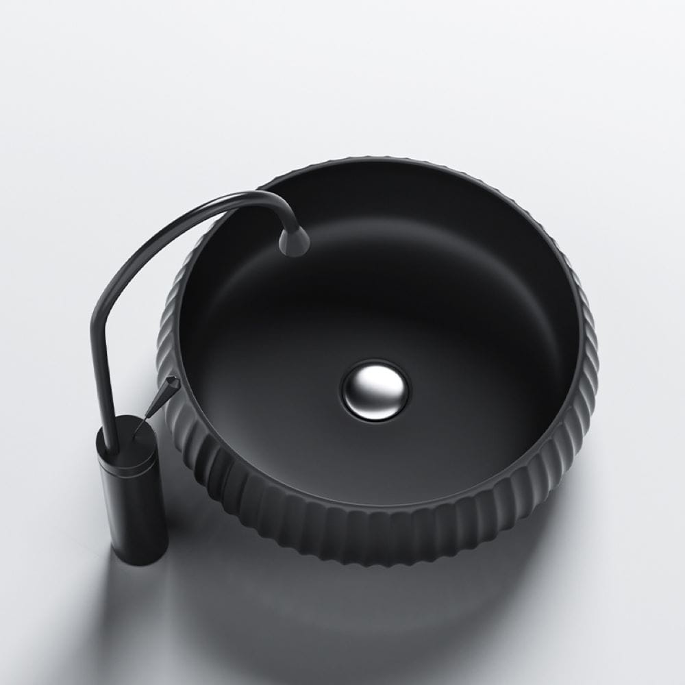 Umywalka nablatowa ceramiczna okrągła ryflowana Naomi-MTB-400 czarny mat