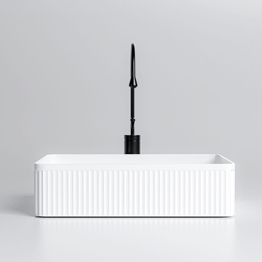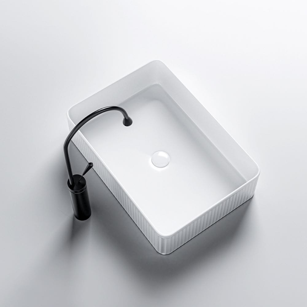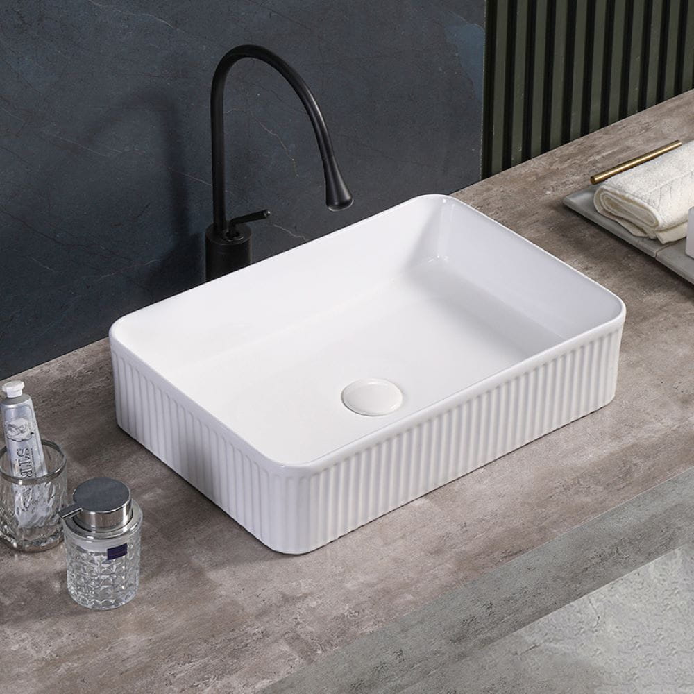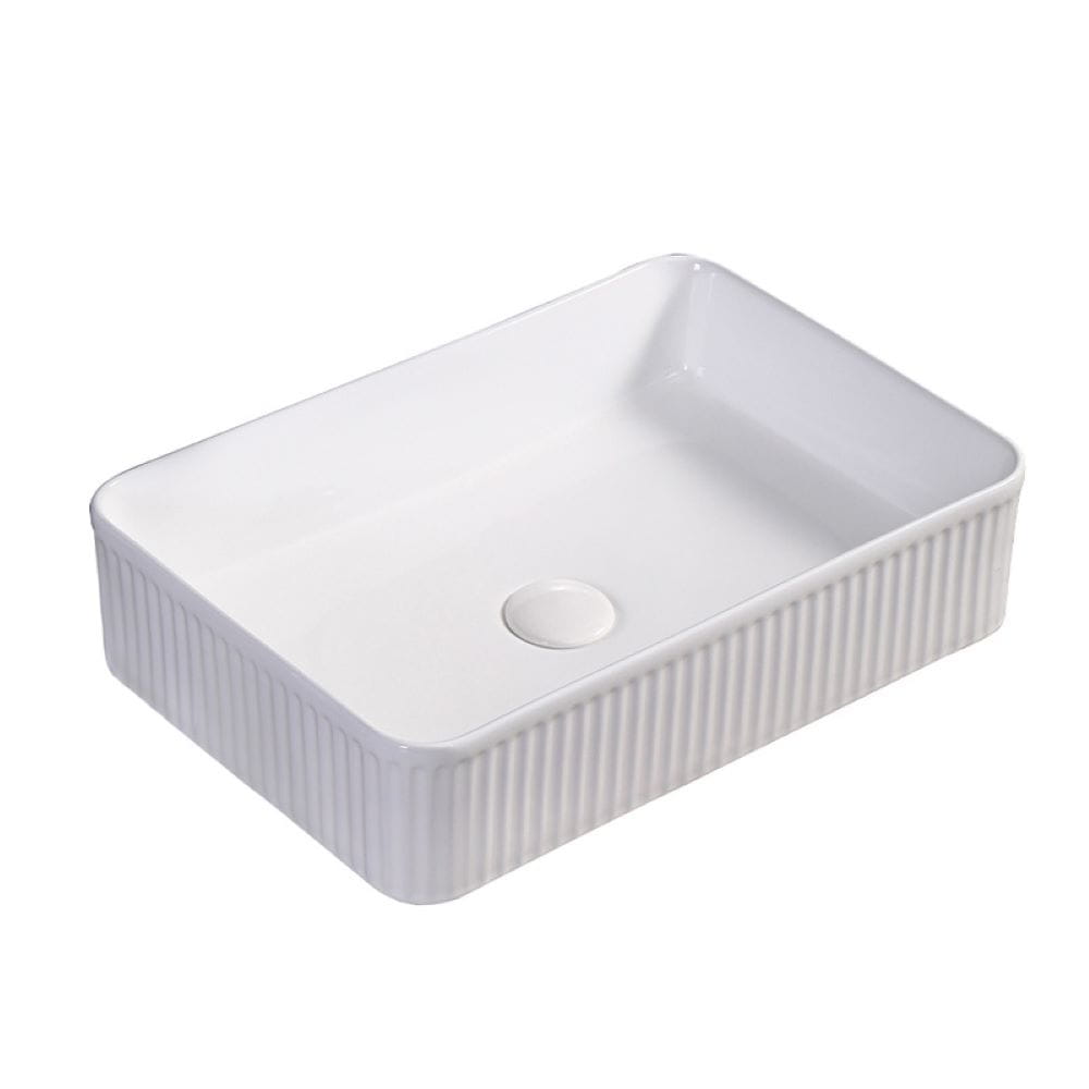 Umywalka nablatowa ceramiczna prostokątna ryflowana Aura-WH-500 biała