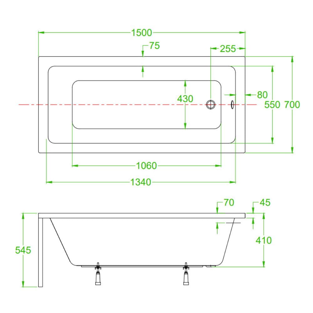 Wanna przyścienna z obudową Nilo biała 150 x 70 cm przelew chrom