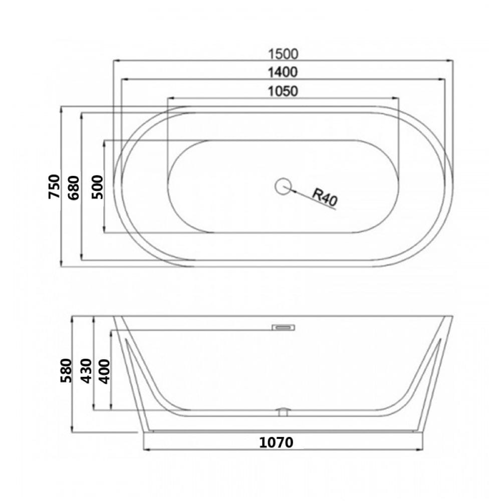 Wanna wolnostojąca Lizbona 502B biała 160 x 75 cm przelew czarny
