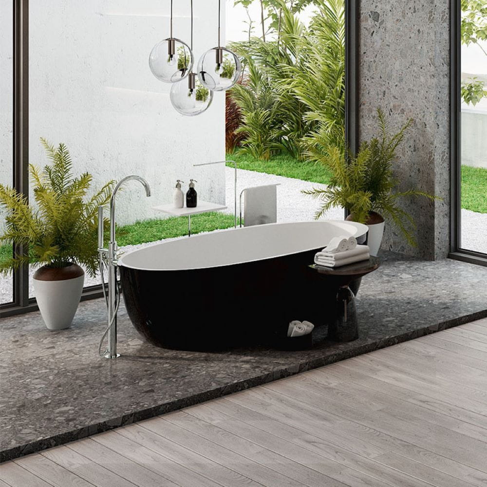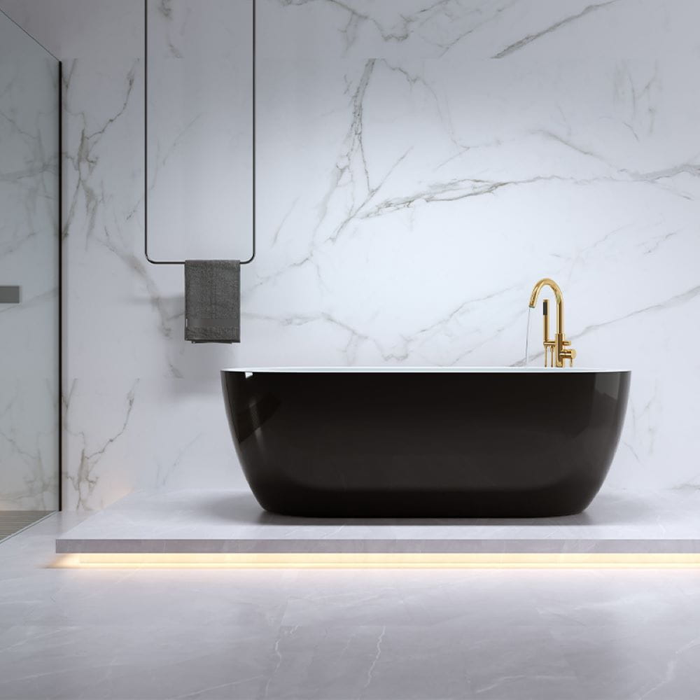 Wanna wolnostojąca Porto 503A czarna 150 x 75 cm przelew złoty