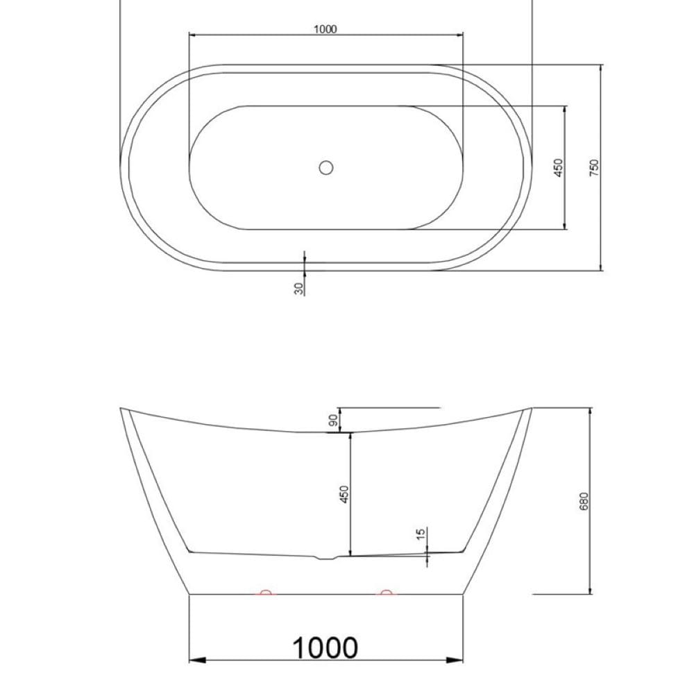 Wanna wolnostojąca Rica 513A biała 150 x 75 cm przelew biały mat