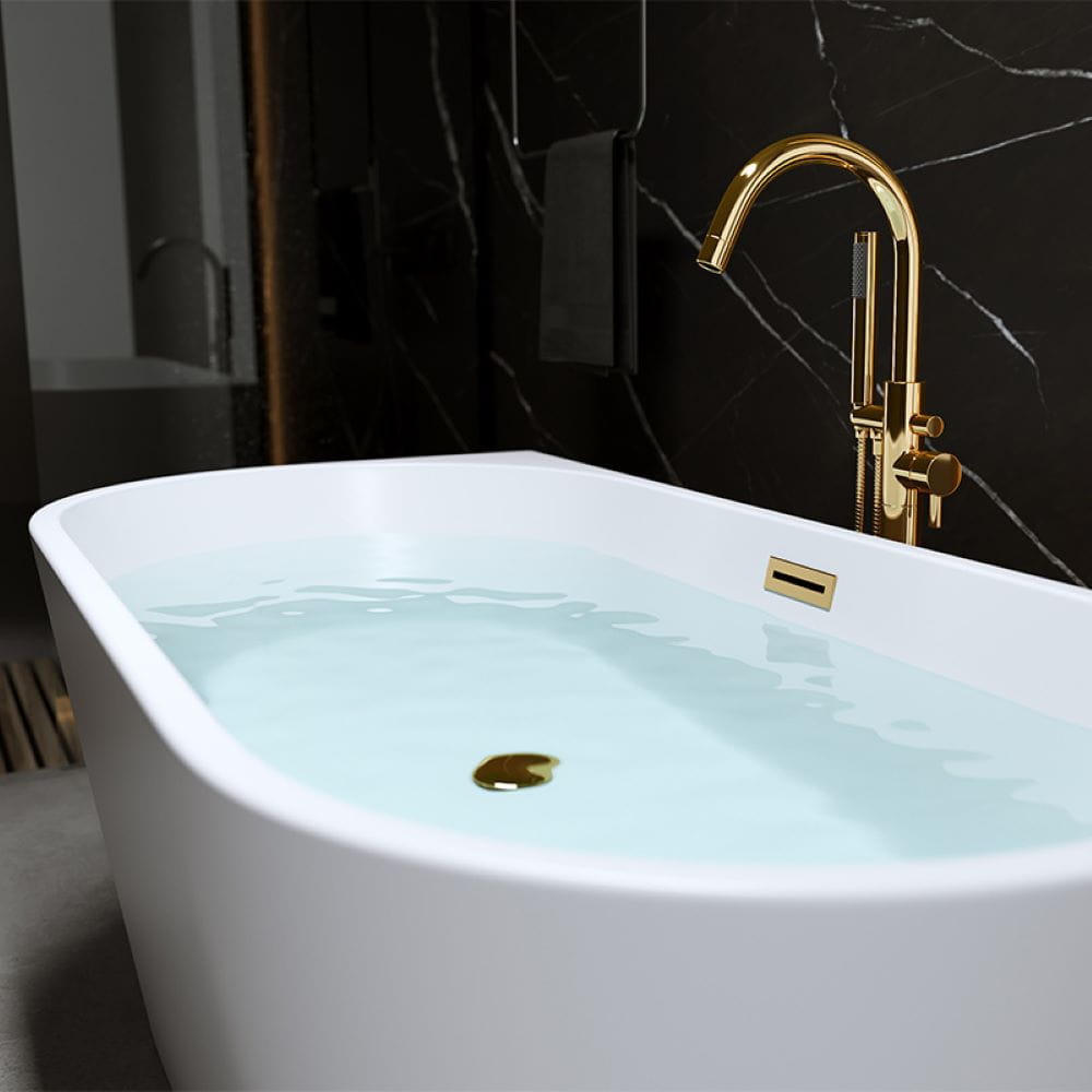 Wanna wolnostojąca przyścienna Lena 527C biała 160 x 75 cm przelew złoty