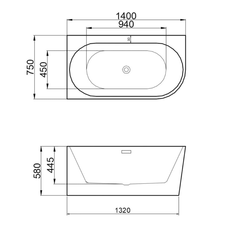 Wanna wolnostojąca przyścienna Mera 509A lewa biała 140 x 75 cm przelew czarny