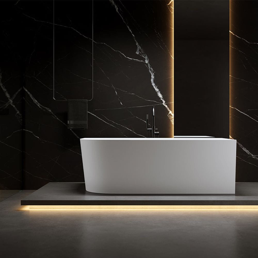 Wanna wolnostojąca przyścienna Mera 509A prawa biała 140 x 75 cm przelew czarny
