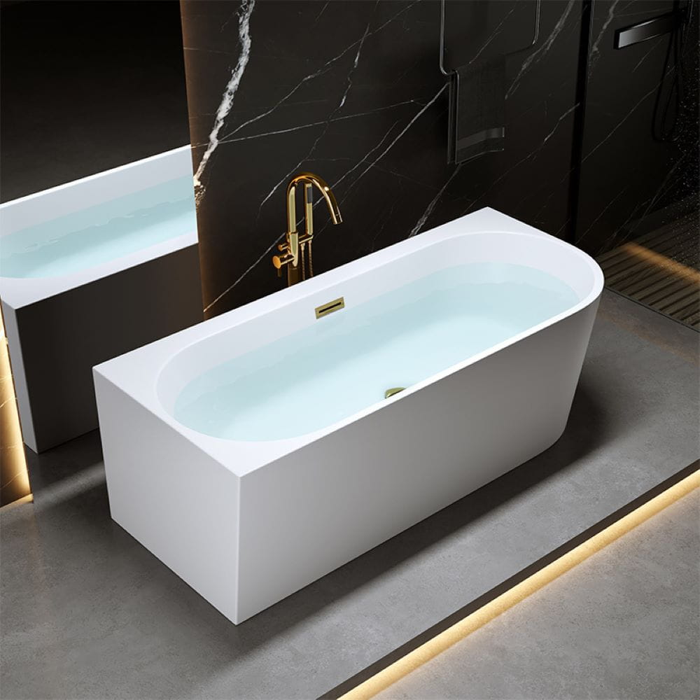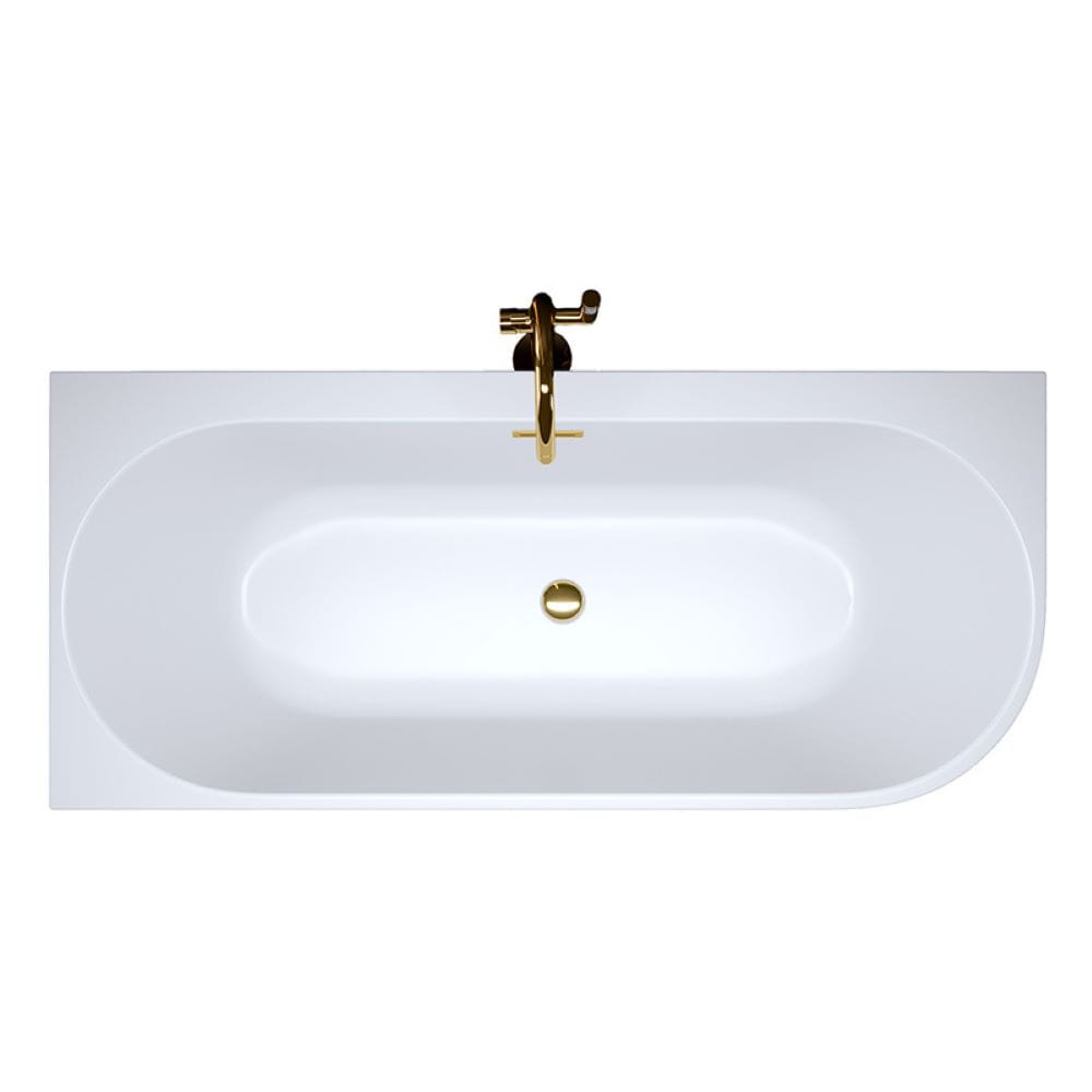 Wanna wolnostojąca przyścienna Mera 509C lewa biała 160 x 75 cm przelew złoty