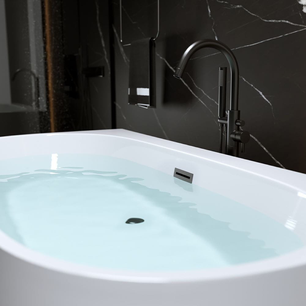 Wanna wolnostojąca przyścienna Nora 526D biała 170 x 85 cm przelew czarny