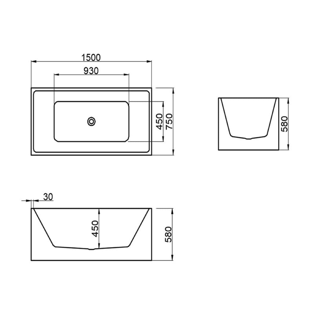 Wanna wolnostojąca przyścienna Santa 507A biała 150 x 75 cm przelew chrom