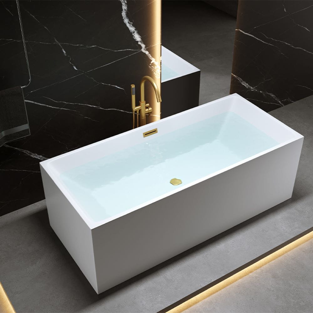 Wanna wolnostojąca przyścienna Santa 507A biała 150 x 75 cm przelew złoty szczotkowany