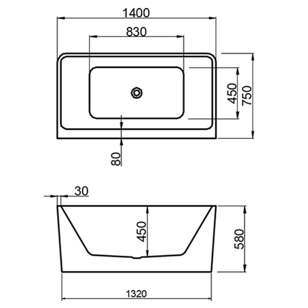 Wanna wolnostojąca przyścienna Sofia 515A biała 140 x 75 cm przelew czarny