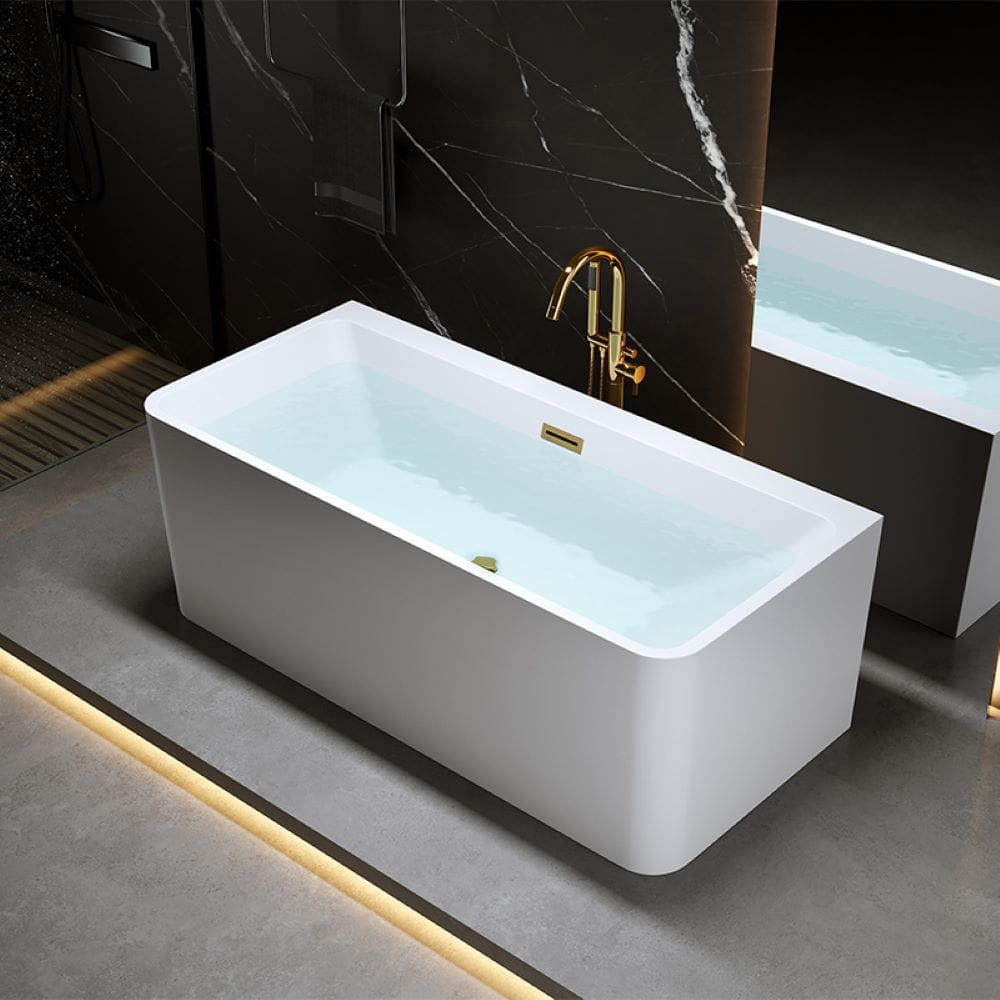 Wanna wolnostojąca przyścienna Sofia 515B biała 150 x 75 cm przelew złoty
