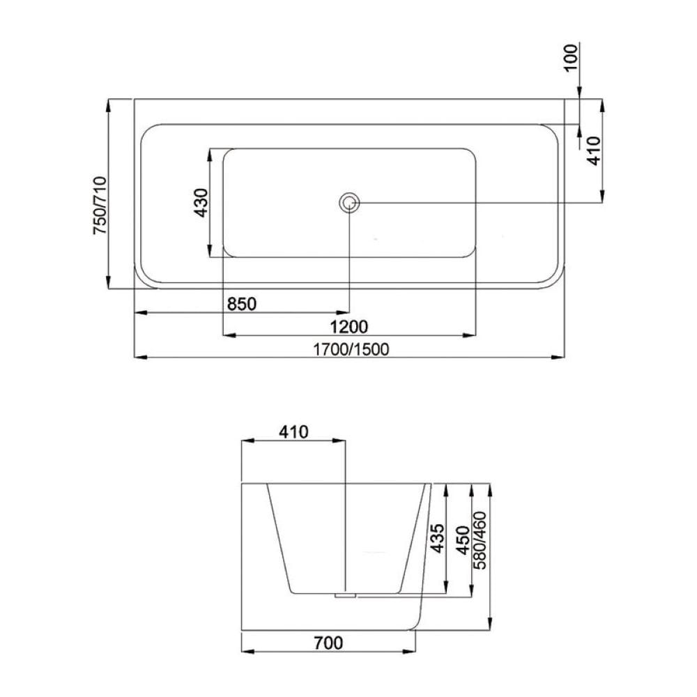 Wanna wolnostojąca przyścienna Sofia 515D biała 170 x 75 cm przelew biały mat