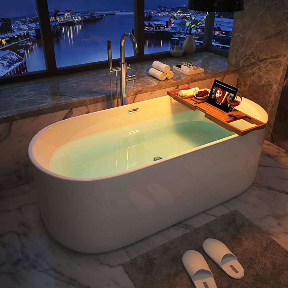Nasze wanny wolnostojące są wykonane z białego akrylu sanitarnego oraz wzmocnionego włókna szklanego, dodatkowo posiada powłokę Anti-Wipe. Każda z naszych wanien to połączenie nowoczesnego stylu z utrzymaniem komfortu użytkowania na najwyższym poziomie. Powierzchnia wanny jest idealnie gładka, bez jakichkolwiek śladów porowatości dzięki czemu jest bardzo łatwa do czyszczenia. Wysokiej jakości akryl sanitarny doskonale izoluje ciepło oraz sprawia, że powierzchnia wykazuje dobrą ochronę przed brudem i zanieczyszczeniami. Owalny kształt wanny pozwala na optymalne wykorzystanie przestrzeni przy zachowaniu maksymalnego komfortu podczas kąpieli. Posiada regulowane nóżki. Wanna jest bardzo mocna i potrafi bez problemu utrzymać ciężar nawet do 500 kg.