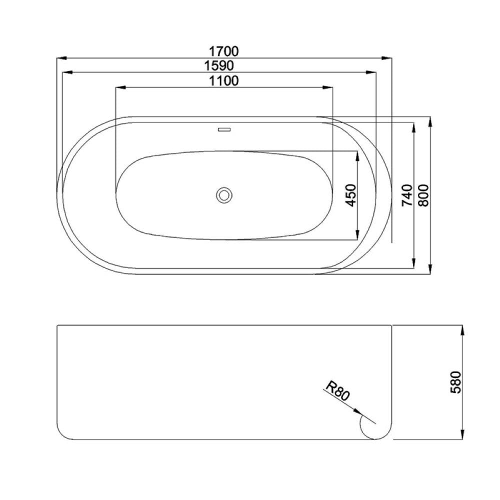 Wanna wolnostojąca przyścienna Vox 501 biała 170 x 80 cm przelew chrom