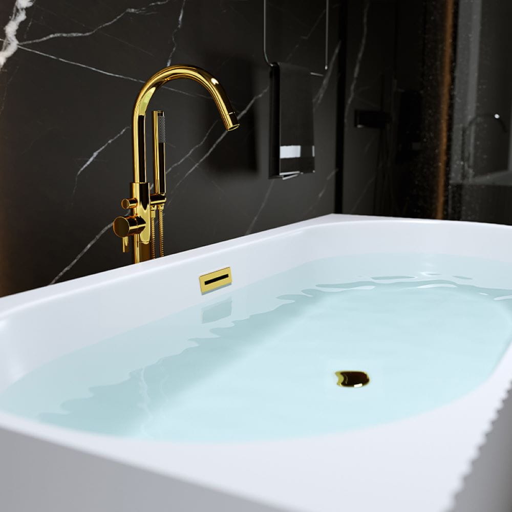 Wanna wolnostojąca przyścienna ryflowana Rio 504A lewa biała 140 x 75 cm przelew złoty