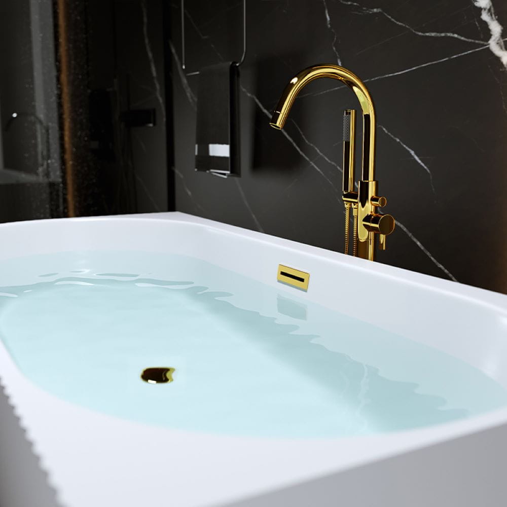 Wanna wolnostojąca przyścienna ryflowana Rio 504B prawa biała 150 x 75 cm przelew złoty