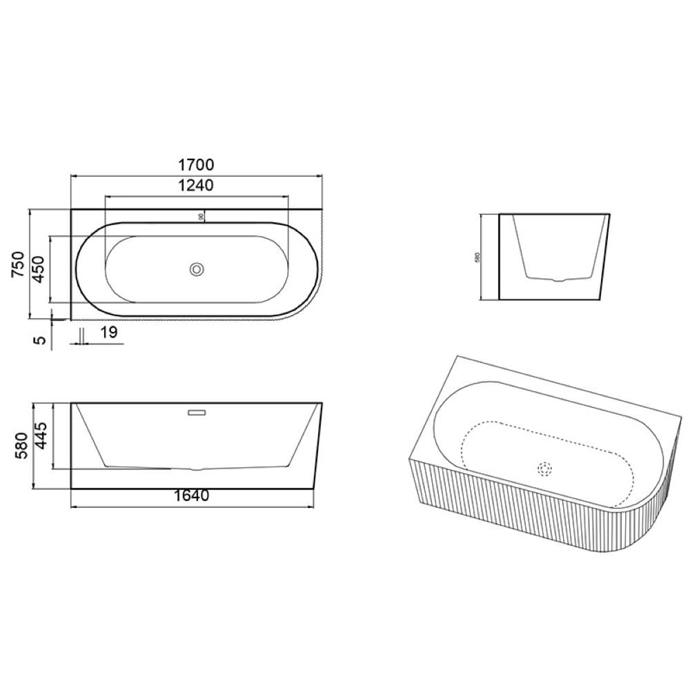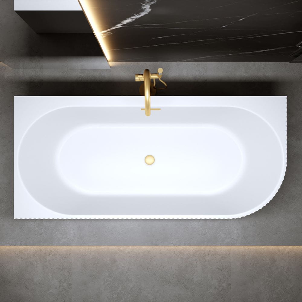 Wanna wolnostojąca przyścienna ryflowana Rio 504D lewa biała 170 x 75 cm przelew złoty szczotkowany