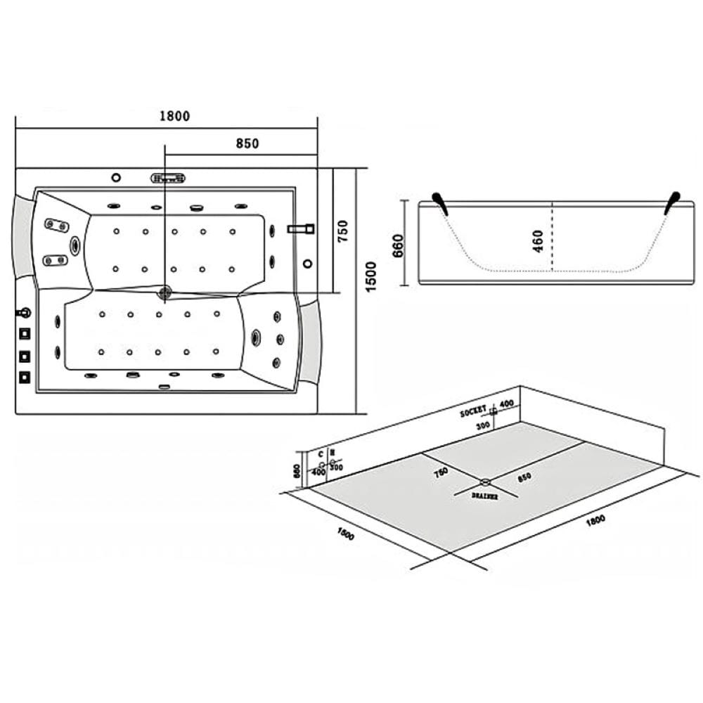 Wanna z hydromasażem Diablo 666 z obudową i deską 180 x 150 cm