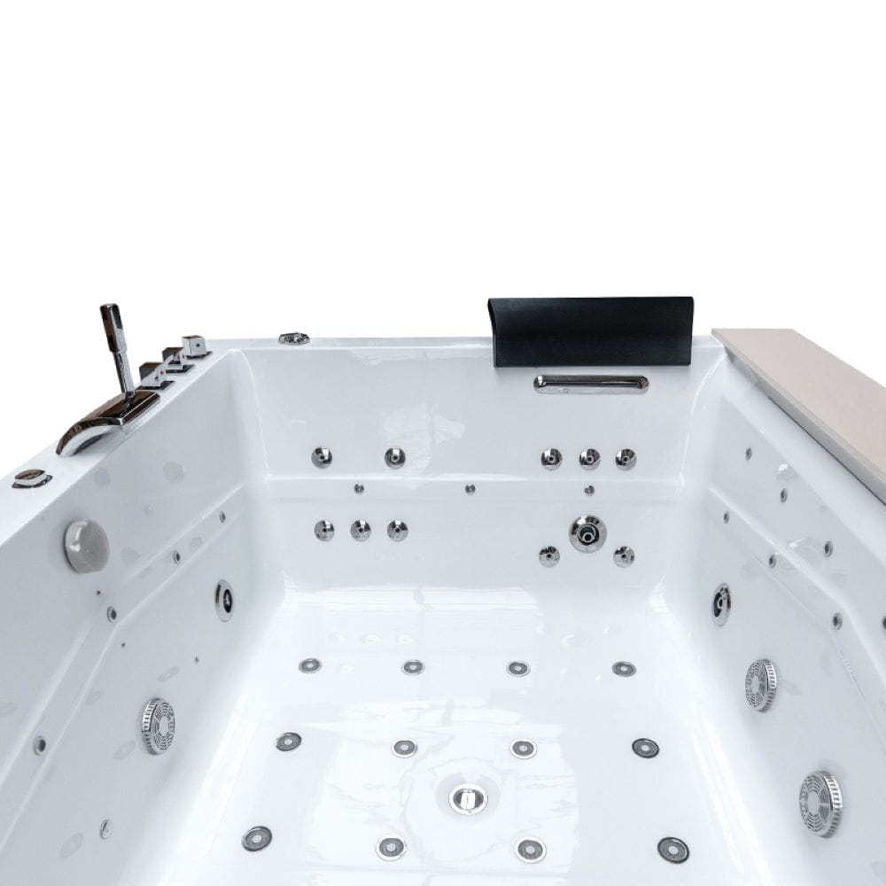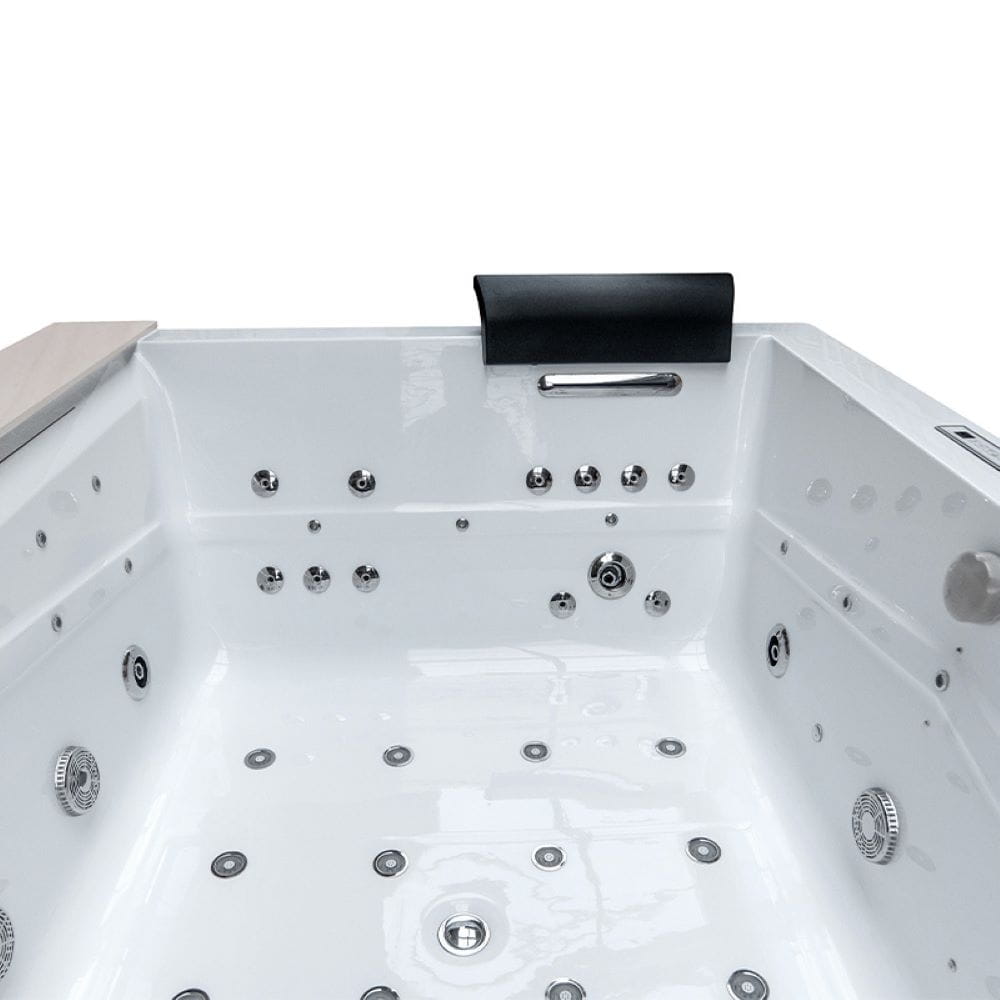 Wanna SPA marki Hydrosan to doskonałe połączenie wysokiej jakości wykonania, innowacyjnych rozwiązań i fantastycznego wzornictwa. Decydując się na wannę marki Hydrosan, wprowadzisz do swojej łazienki połączenie trwałości, jakości, najnowszych technologii i ponadczasowej elegancji, które zachwycą Ciebie i Twoich gości. Wanna SPA Hydrosan to luksusowa propozycja, która zapewni niezapomniane doznania podczas kąpieli. Ta przestronna wanna została zaprojektowana z myślą o maksymalnym komforcie i relaksie. Nasza wanna wyposażona jest w zaawansowany system hydromasażu, wanna posiada różnorodne dysze, które zapewniają kompleksową i indywidualnie dostosowaną terapię wodną, dysze Hydro Jeet skupiają się na masażu pleców, co daje wrażenie odprężającego i kojącego hydromasażu. Wanna jest napędzana przez pompy. Wanna jest na stelażu ze stali nierdzewnej. Wannę wyposażono w zabezpieczenia przed przebiciem oraz przegrzaniem pompy.