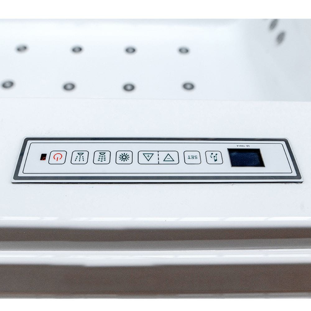 Zestaw zawiera: dotykowy Panel kontrolny z wbudowanym radiem i funkcją bluetooth, kąpiel ozonowa, marmurowa płyta nad wodospadem w kolorze białym, wodospad wzdłuż wanny, dwa wodospady na plecy, kran do nalewania wody, elegancka słuchawka prysznicowa wielofunkcyjna, przełącznik zużycia wody, przełącznik zmiany intensywności, regulator ciepłej/zimnej wody, cyrkulacja wody, dwie eleganckie wygodne poduszki, odpływy wody, kontroler dysz powietrznych, dwa czujniki poziomu wody, syfon, obudowa, sterylizacja ozonowa oraz dwa węże przyłączeniowe do wody.