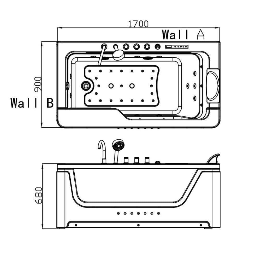 Wanna z hydromasażem Nevada 912 biała 170 x 90 cm
