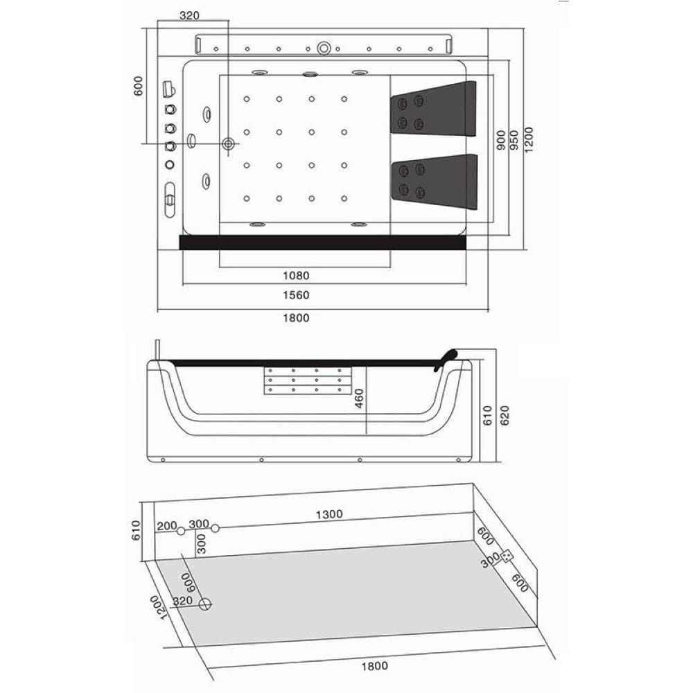 Wanna z hydromasażem z podgrzewaczem Imperia 610H biała 180 x 120 cm