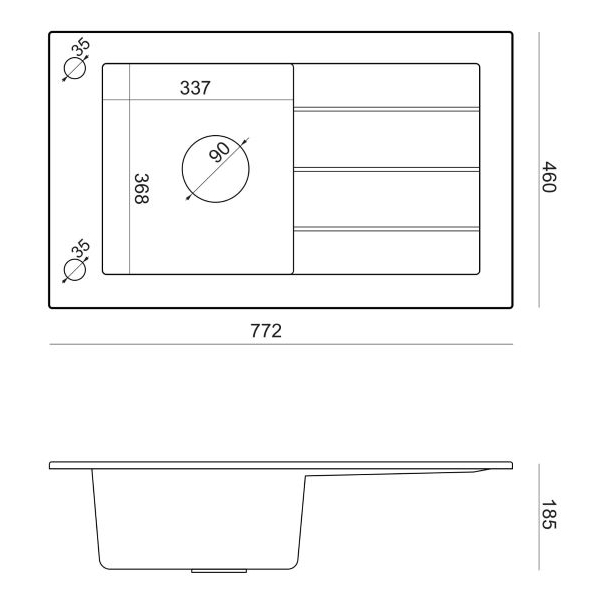 | Długość x szerokość zlewozmywaka | 772 mm x 460 mm |
