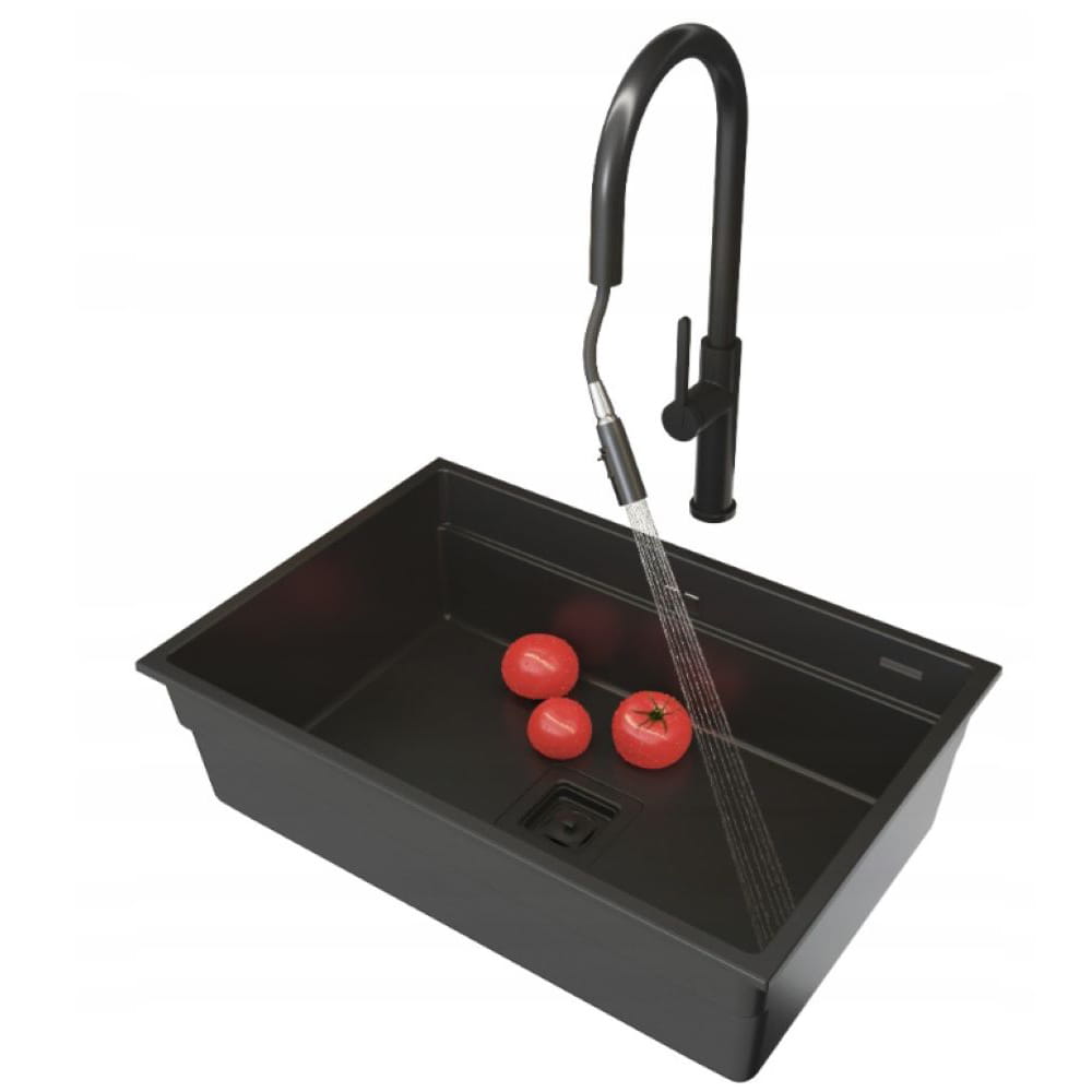 Zestaw Epir70 - zlew podwieszany czarny - bateria kuchenna - syfon