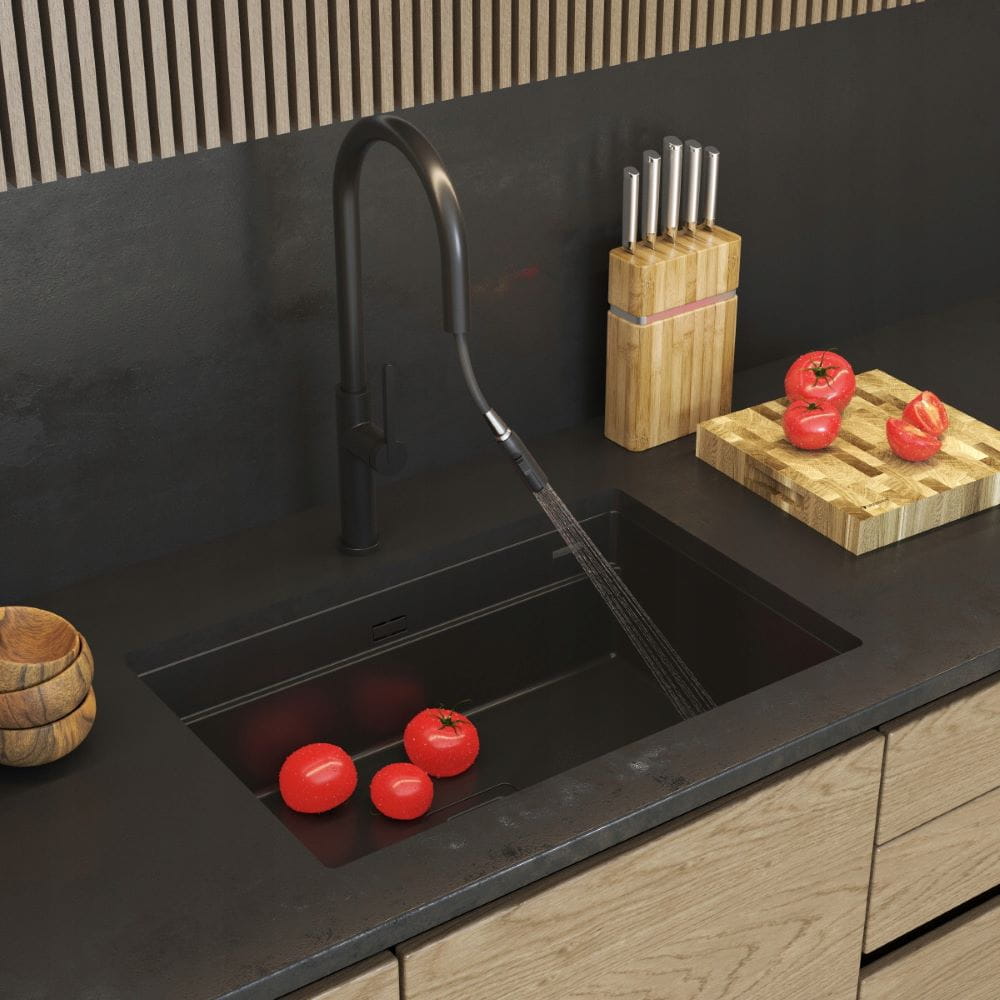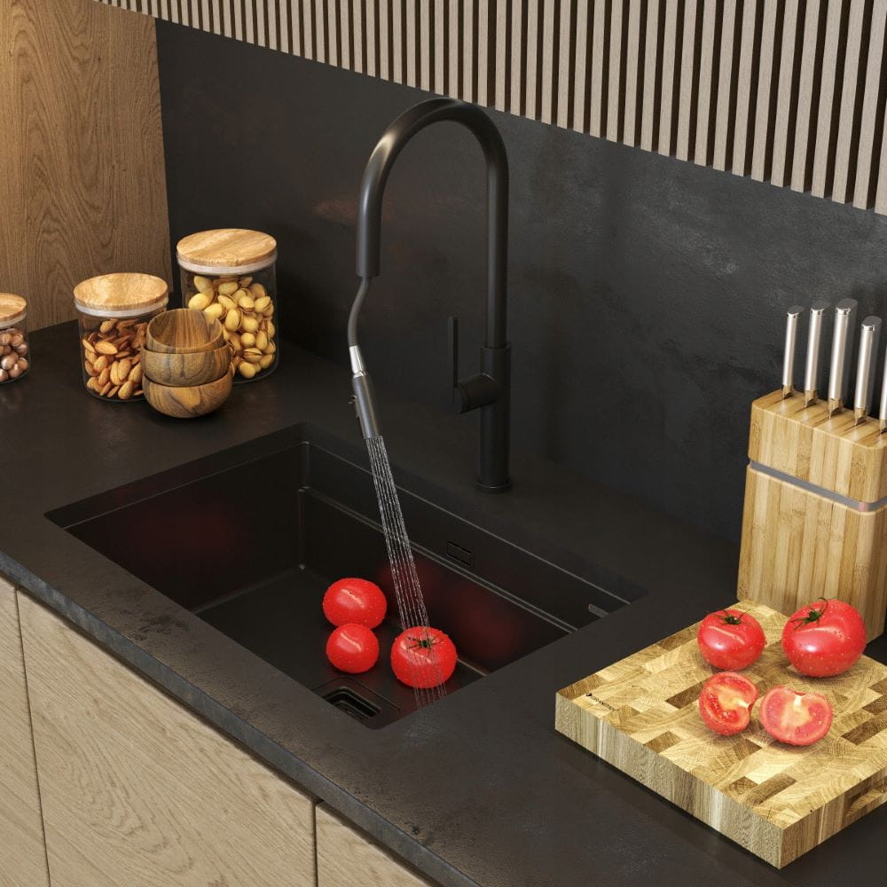 Bateria kuchenna czarna z wyciąganą wylewką Oxi