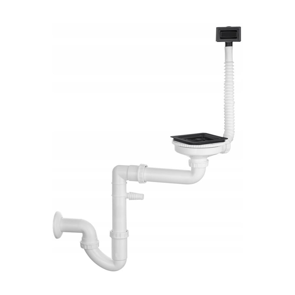 ● Syfon przyścienny oszczędzający przestrzeń z możliwością podłączenia pralki lub zmywarki w kolorze czarnym.