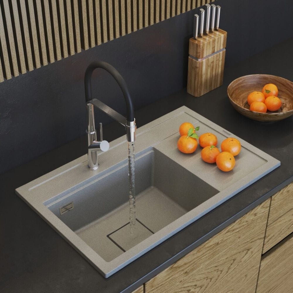 Zestaw granitowy beżowy - bateria kuchenna - kran - syfon - Teor