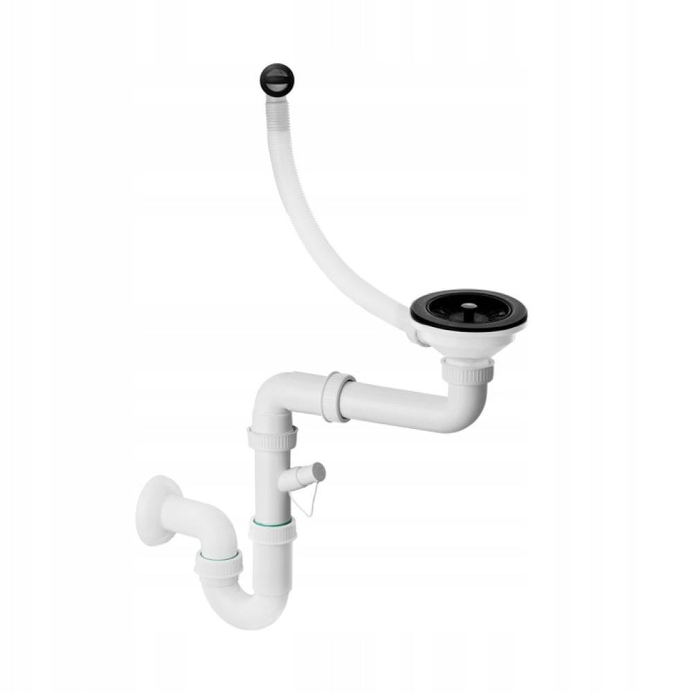 ● Syfon jednokomorowy manualny w kolorze czarnym, który wyróżnia nowoczesny, okrągły odpływ.