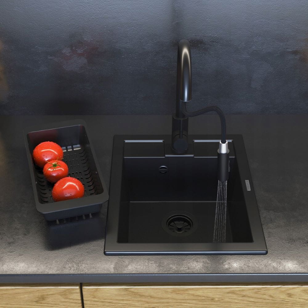 Zestaw - Zlewozmywak granitowy Best czarny - bateria Loseto - syfon - ociekarka