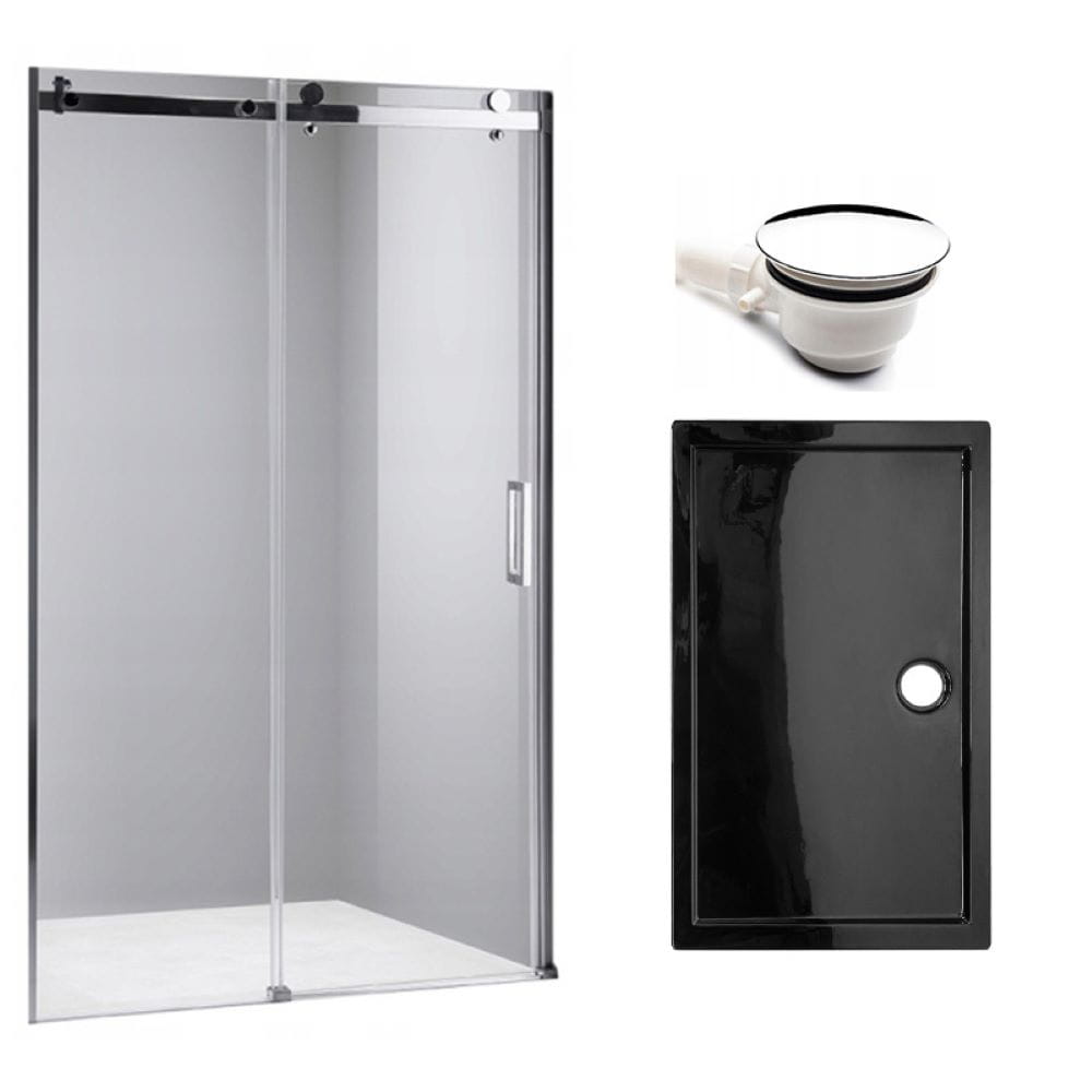 Zestaw - drzwi prysznicowe chrom 105-110 cm 8 mm - brodzik 110x80 cm - syfon