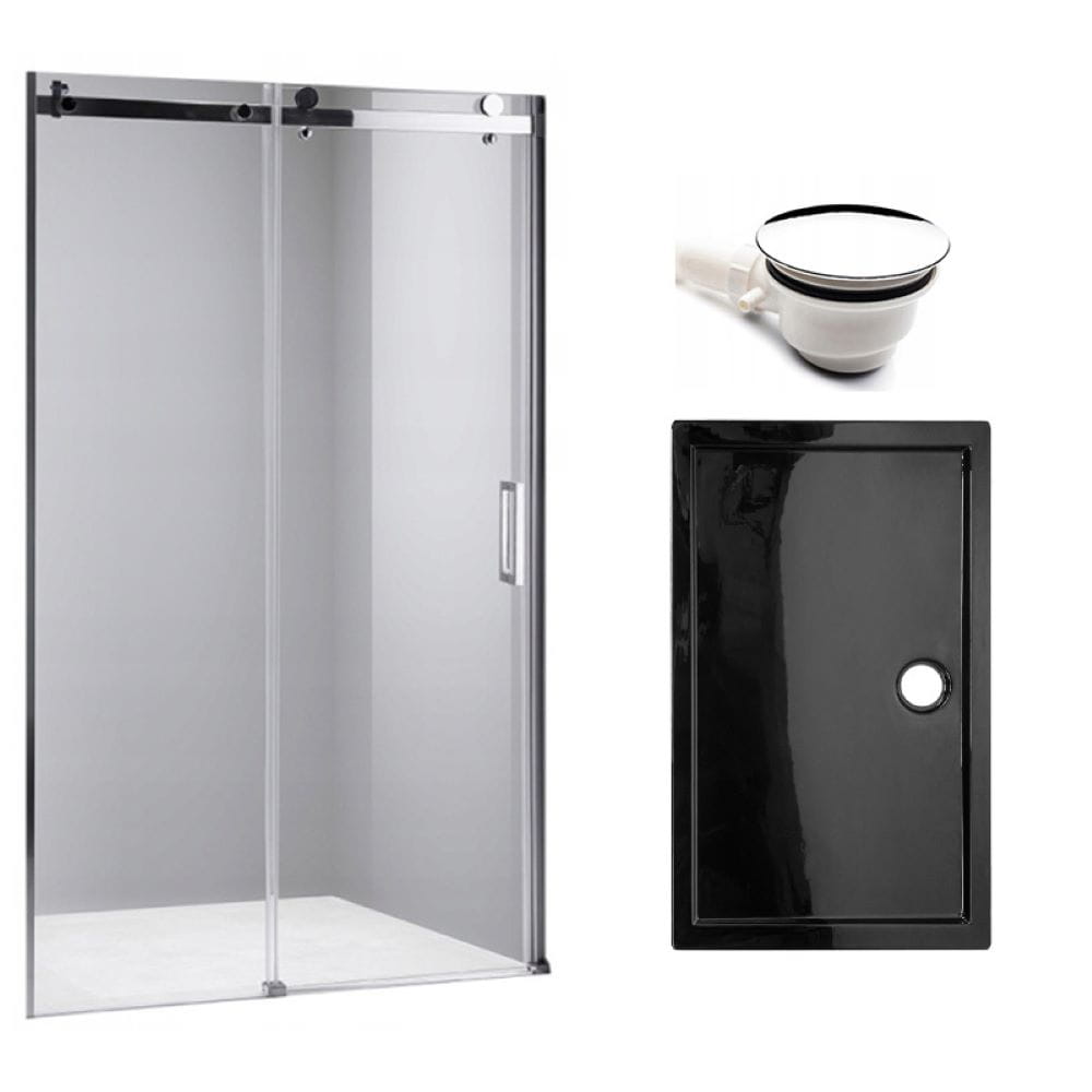 Zestaw - drzwi prysznicowe chrom 115-120 cm 8 mm - brodzik 120x100 cm - syfon