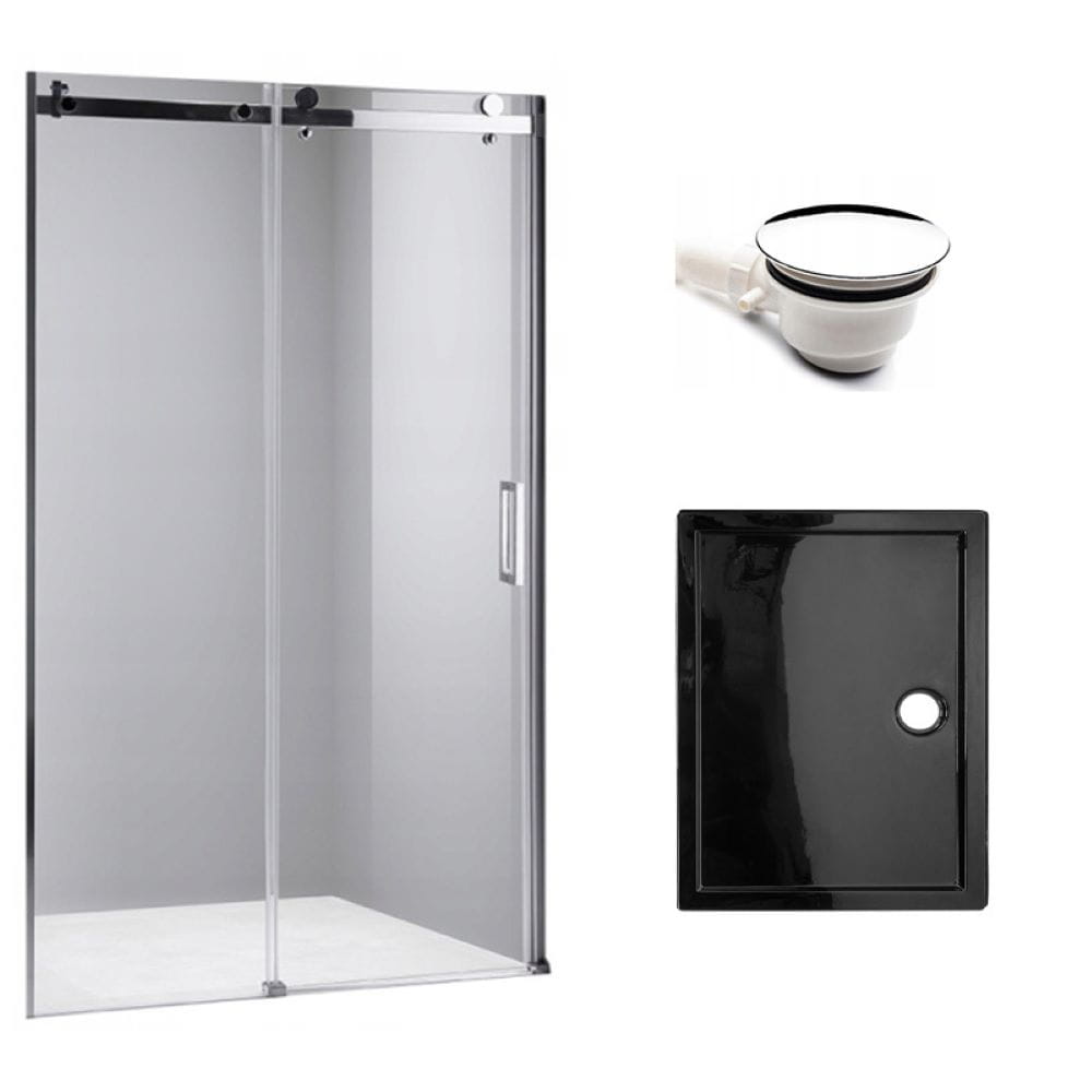 Zestaw - drzwi prysznicowe chrom 95-100 cm 8 mm - brodzik 100x90 cm - syfon