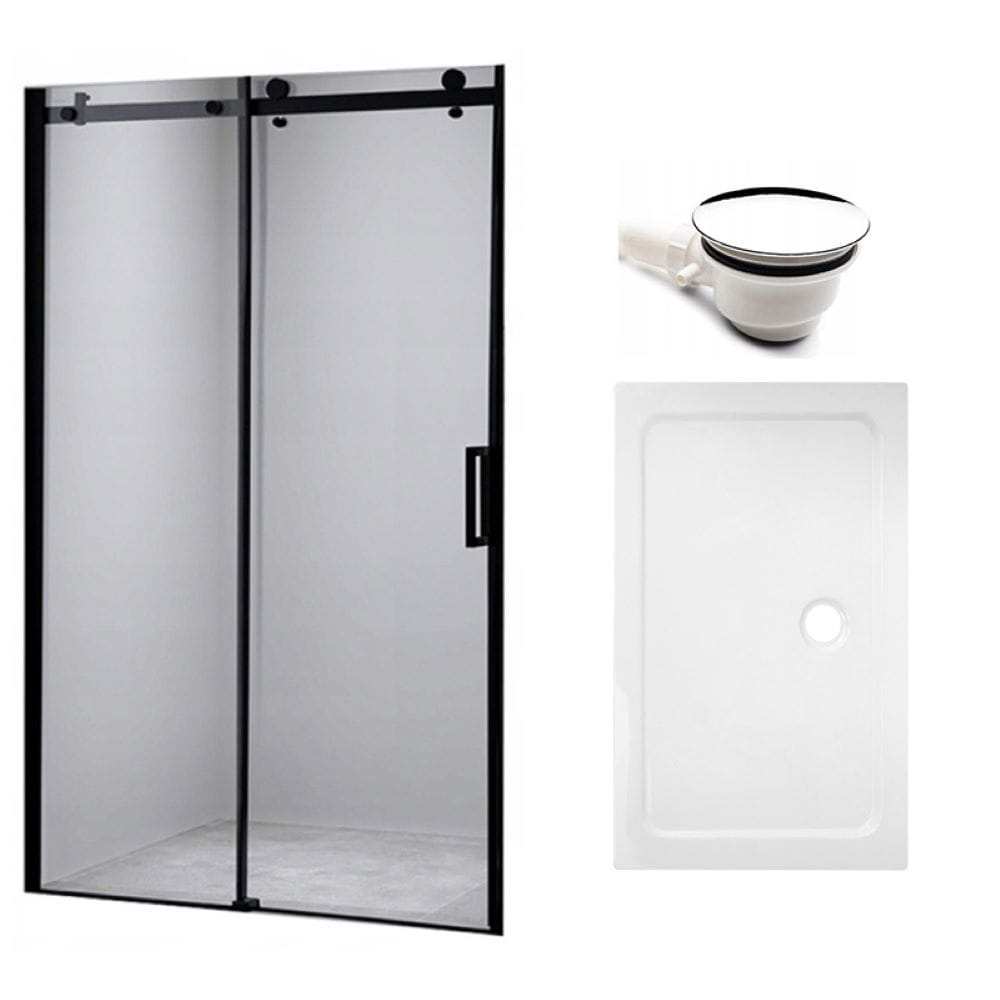 Zestaw - drzwi prysznicowe czarne 105-110 cm 8 mm - brodzik 110x70 cm - syfon