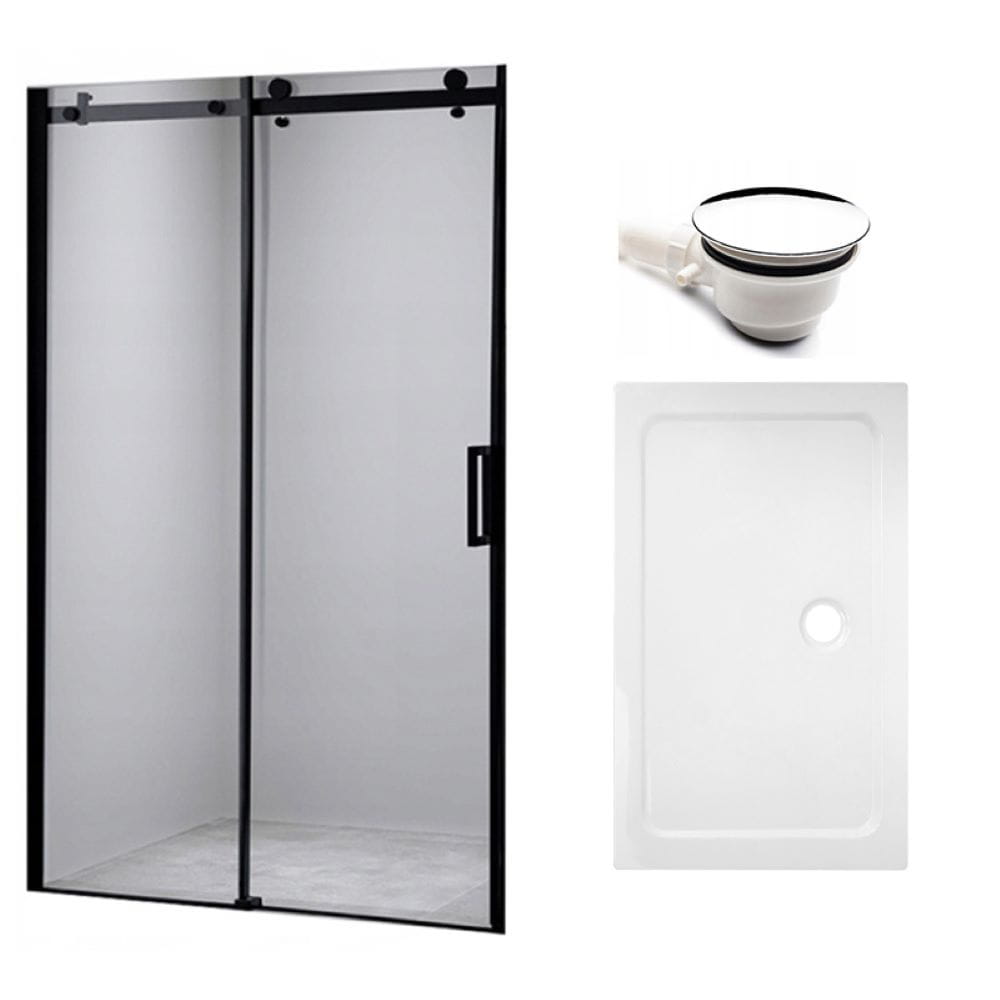 Zestaw - drzwi prysznicowe czarne 105-110 cm 8 mm - brodzik 110x90 cm - syfon