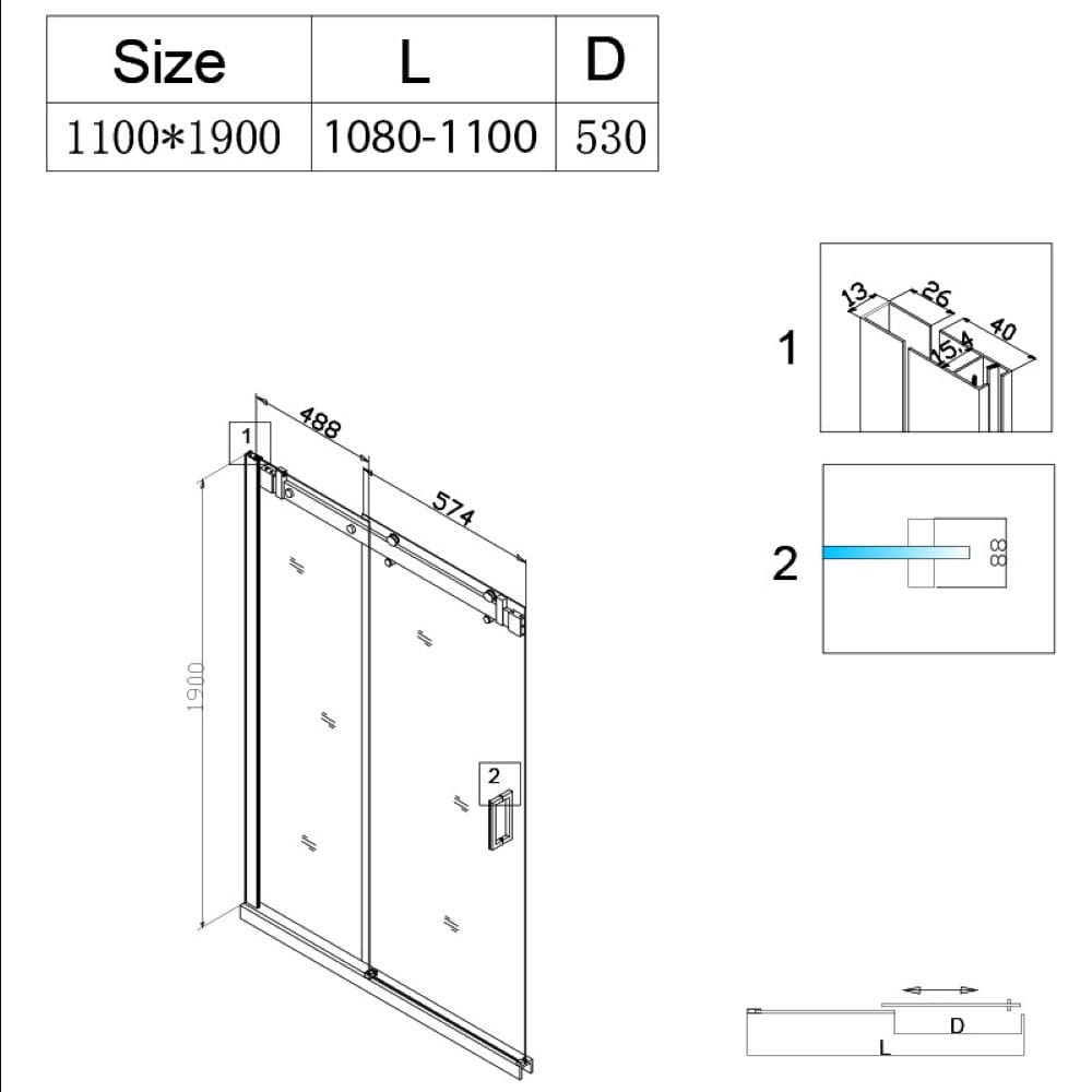Istnieje możliwość dostosowania długości drzwi prysznicowych do mniejszych rozmiarów nawet o 50 mm! Należy skrócić profil górny samodzielnie TYLKO I WYŁĄCZNIE od strony drzwi (szyny po której jeżdżą rolki, poprzez jej ucięcie na dowolną długość).