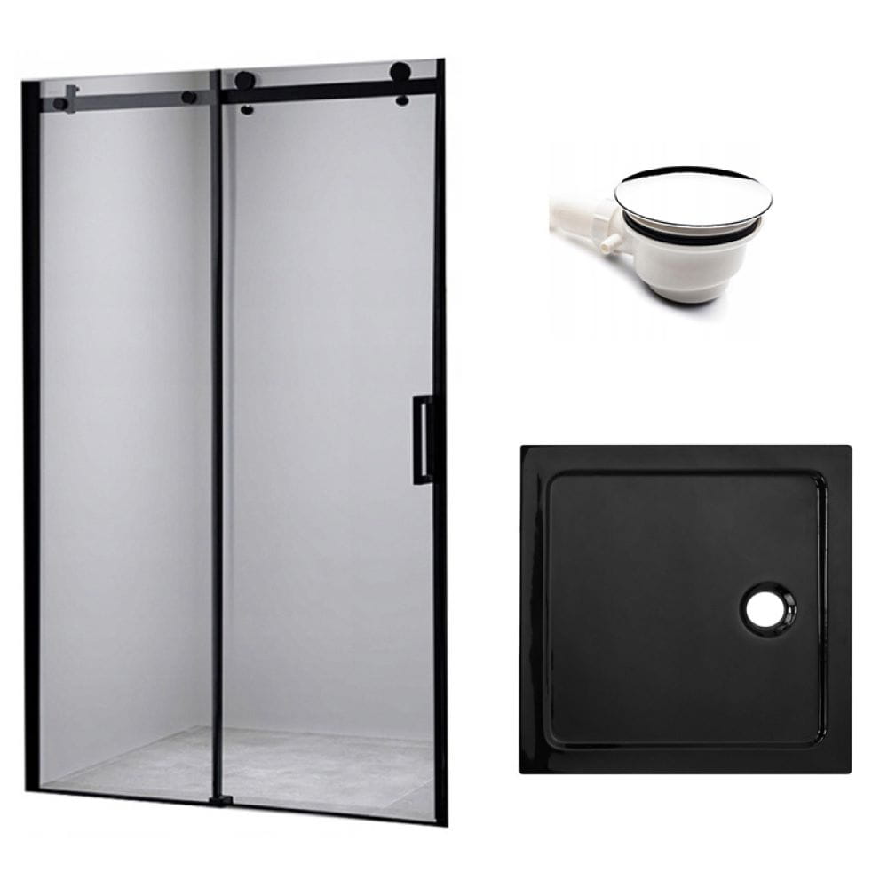 Zestaw - drzwi prysznicowe czarne 95-100 cm 8 mm - brodzik 100x100 cm - syfon