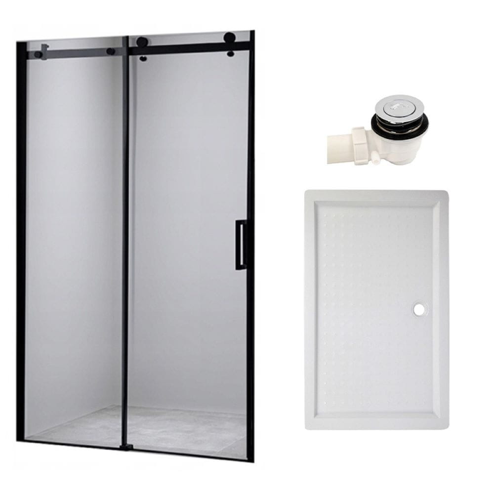 Zestaw - drzwi prysznicowe czarne 95-100 cm 8 mm - brodzik 100x80 cm - syfon klik klak