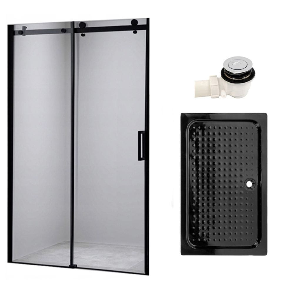 Zestaw - drzwi prysznicowe czarne 95-100 cm 8 mm - brodzik 100x80 cm - syfon klik klak