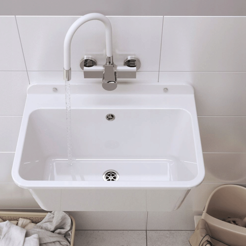 ● Zlew LARGE wykonano z wytrzymałego tworzywa sztucznego, które cechuje się dużą odpornością na uszkodzenia mechaniczne, zarysowania oraz działanie wody i środków chemicznych. Materiał ten gwarantuje nie tylko trwałość, ale także łatwość w utrzymaniu czystości. Zlew gospodarczy LARGE został zaprojektowany tak, aby sprostać potrzebom użytkowników w różnych warunkach. Idealnie sprawdza się w: pomieszczeniach gospodarczych, garażach i warsztatach.