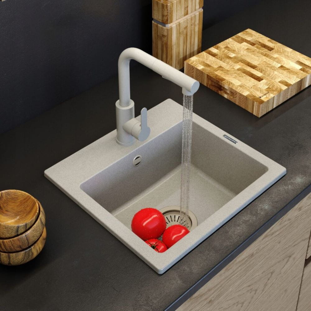 Zestaw granitowy beżowy - bateria kuchenna - kran - syfon - Teor