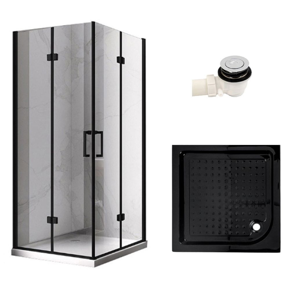 Zestaw - kabina prysznicowa kwadratowa 100x100 cm - brodzik - syfon - klik klak